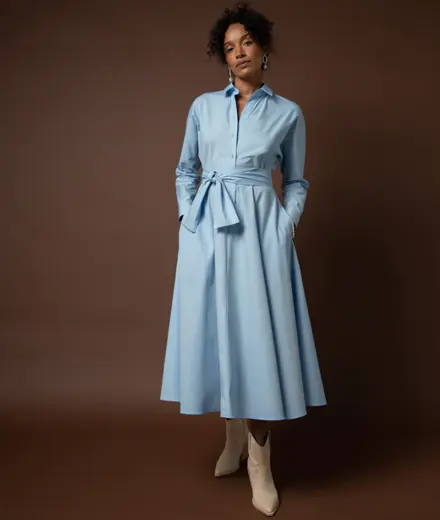 The bodice drapes on the bias over the shoulders and arms but nips in at the waist for a flattering silhouette. The circle skirt moves gracefully with you. The sash belt can be tied in a beautiful bow to further accentuate the waist. This feminine long sleeve dress is offered in our newest hue for days when you want to look pretty in pink.