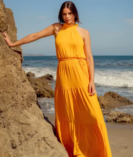 This luxurious, beautiful mango-colored maxi dress is perfect for any occasion. Made from a high-quality, silky soft fabric and elastic at the waist, not only will you be looking elegant and chic, but you won’t have to give up comfort with our Gia dress. You'll be sure to turn heads whenever you're wearing it! Responsibly handmade in Bali with all the love.