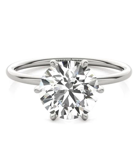 For a bolder presence, the Ava solitaire features a secure six-prong setting on a sleek, super-comfortable band.