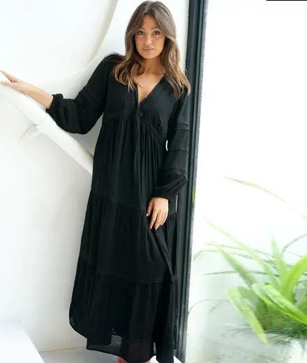 Handcrafted in Bali with feminine details of cotton lace and a tiered skirt, this flattering silhouette skims your body and flows with you.
