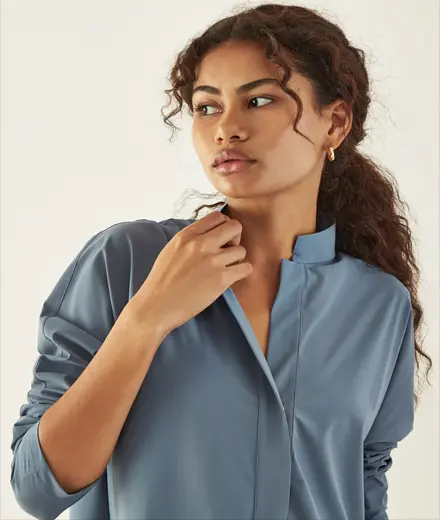 Crafted from our Technical Silk this Italian fabric is stretchy, soft, and machine-washable. Now you see why this button up blouse always sells out fast.