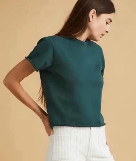 A sustainably sourced super soft 100% organic cotton French Terry Box Tee sweatshirt, with relaxed raw edge details. This short sleeve embodies the easy classic piece to top-off your wardrobe. You'll be reaching for it time and time again, as it seamlessly compliments any Classic Tee.